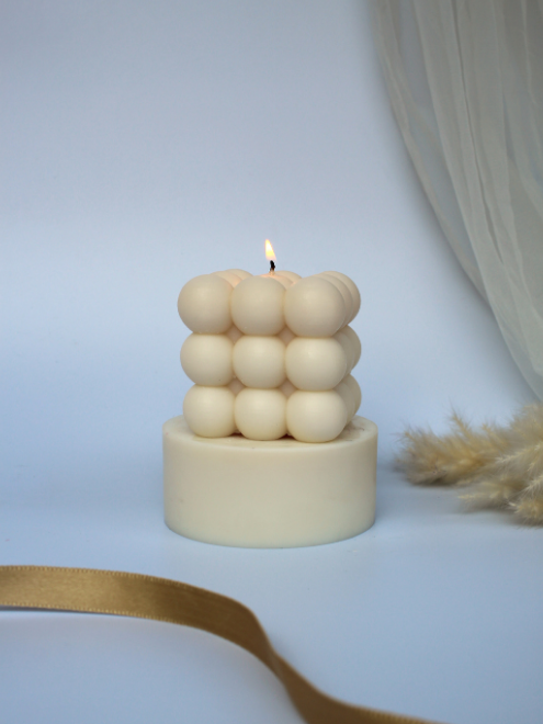 The charming and contemporary addition to any home decor. Crafted in a sleek white color, this candle features a unique bubble design that adds a playful yet sophisticated touch to your space.