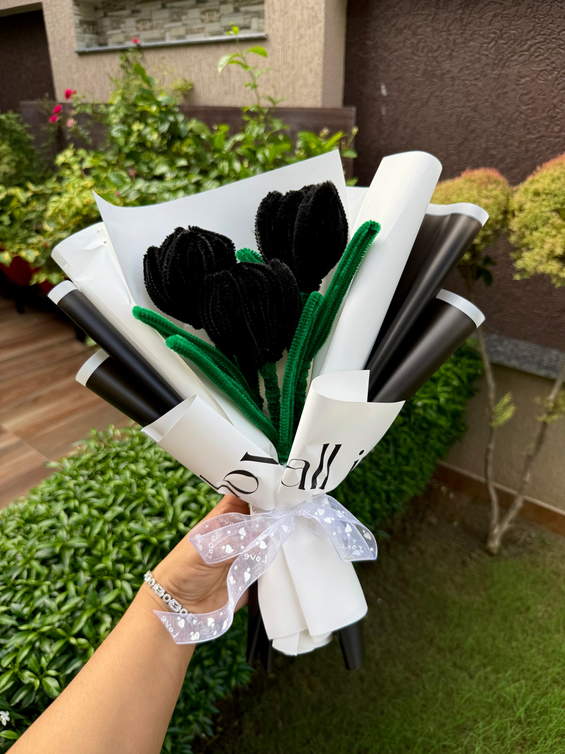 Mysterious, elegant, and rare, black tulips symbolize strength, power, and deep passion. This handcrafted bouquet brings an air of sophistication and intrigue to any space, perfect for someone who appreciates beauty with an edge.
