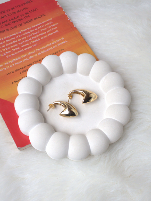 The Bubble Trinket Dish is a stylish and modern decorative piece that brings a touch of elegance to any space. Featuring a unique bubble design, this tray adds a playful yet sophisticated touch to your home decor. Perfect for displaying candles, perfumes, or small trinkets, the Bubble Trinket Dish offers both functionality and aesthetic appeal. Its sleek, minimalist design makes it an ideal addition to any room, whether used as a serving tray or simply as a chic accent piece. Elevate your decor with the versatile and eye-catching Bubble Trinket Dish. Jewelry is used solely for photography purposes and is not a part of the product.