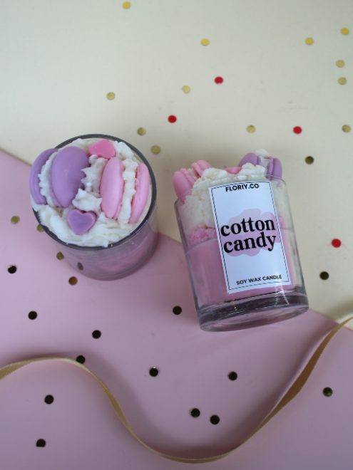 Indulge in the delightful scent of our Cotton Candy Scented Candle, designed to fill your space with the nostalgic sweetness of a carnival treat. Hand-poured with premium soy wax, this candle features a soft pastel aesthetic, topped with realistic macaron wax embellishments. Perfect for home décor, gifting, or creating a cozy ambiance, its long-lasting fragrance will leave you feeling relaxed and uplifted.