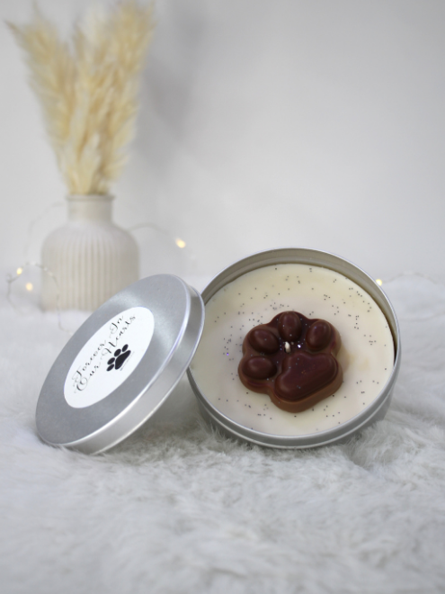 Calling all dog lovers! The ultimate way to celebrate your love for furry friends. Featuring an adorable wax dog paw inside, this beautifully crafted candle adds warmth, charm, and coziness to any space. Housed in a stylish, portable tin jar, it’s perfect for home, travel, or as a heartfelt gift for pet parents.