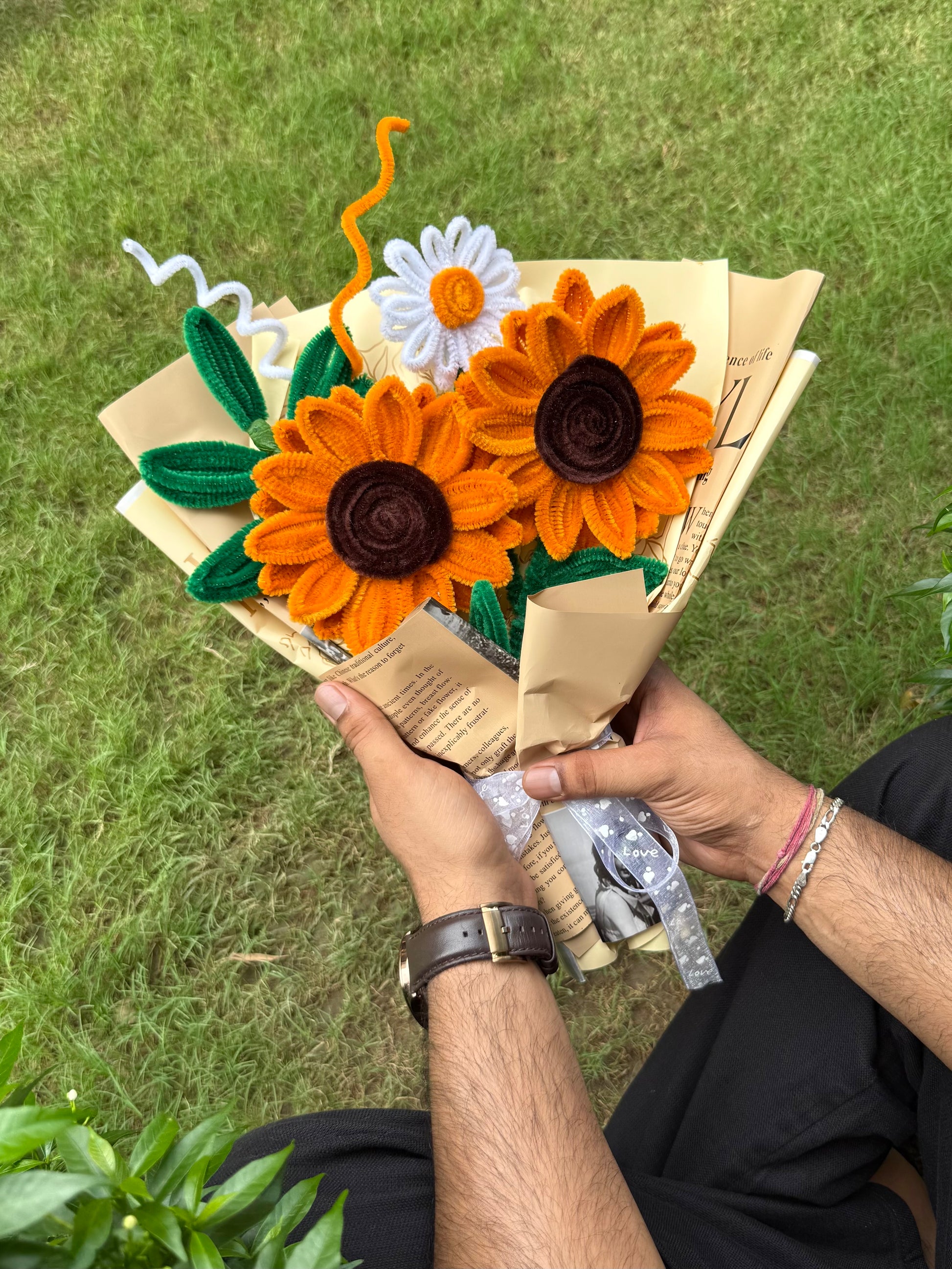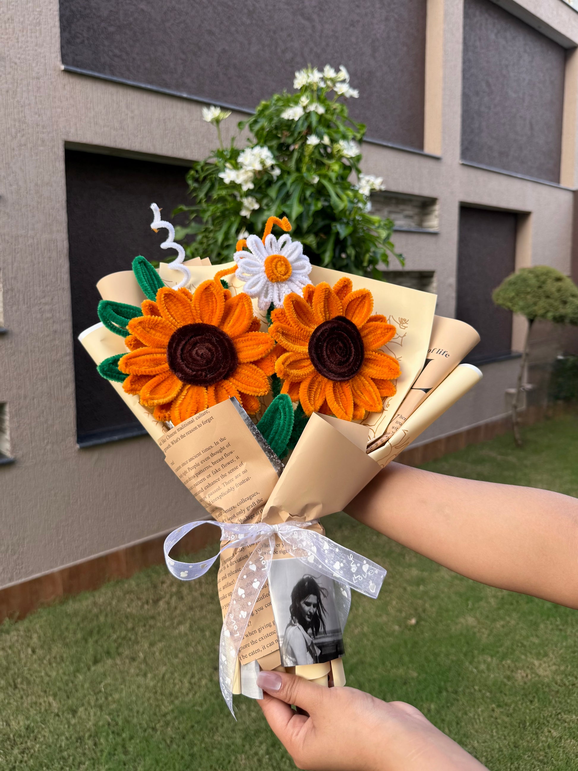 - Raksha Bandhan Gift: Celebrate your bond with a handmade crochet sunflower bouquet.