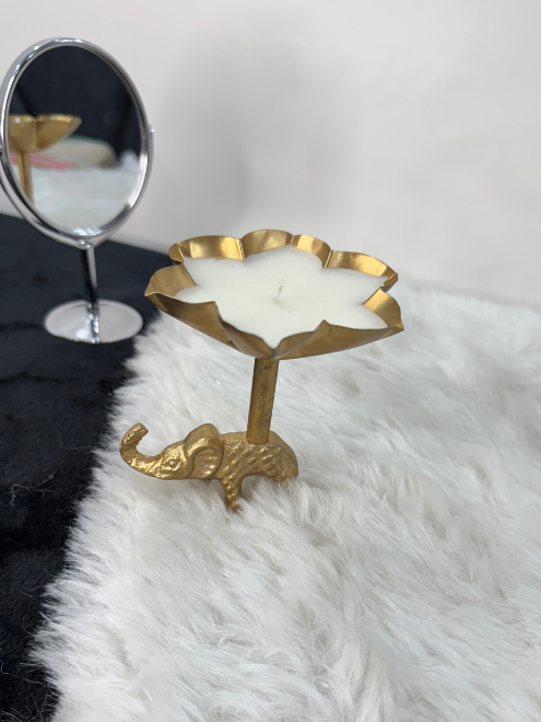 Enhance your festive décor with this luxurious Elephant Urli candle, designed to bring elegance and serenity to any space. One candle is adorned with delicate pearls and gold leaf accents, while the other features real dried roses, adding a touch of natural beauty.