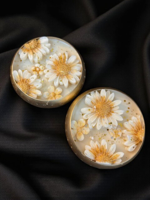 Indulge in the elegance of the Hammered Daisy Urli Candle, a handcrafted floral wax creation that radiates sophistication. Designed with intricate white and gold flowers embedded in premium soy wax, this candle adds a luxurious touch to your home décor.