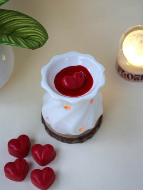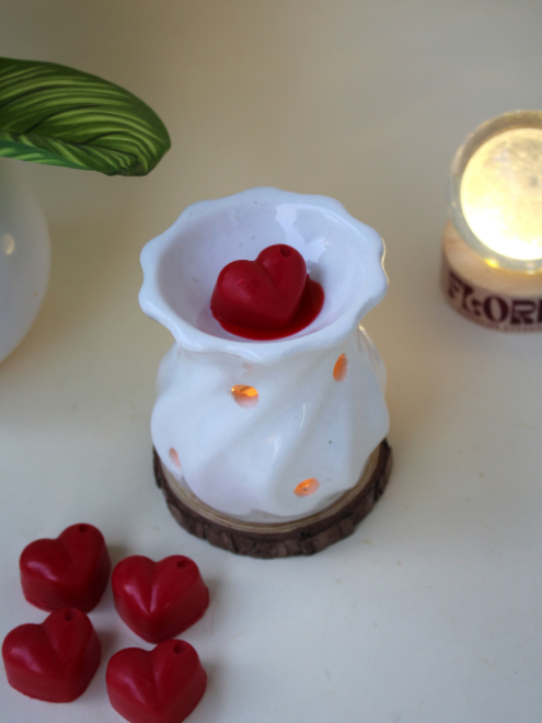 The Melt My Heart set is the perfect gift to express your love and affection. It includes six heart-shaped wax melts, each infused with a romantic rose fragrance, along with two tealights to gently melt the wax and release its delightful aroma.