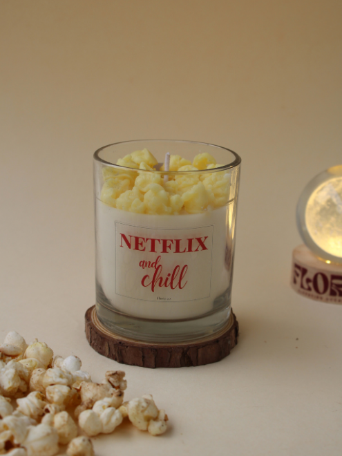 Bring a fun, playful twist to your space with our Popcorn Candle, featuring a delightful vanilla fragrance and chose from two trendy options "Netflix & Chill" & "Movie Night". Designed to resemble a bucket of popcorn, this unique candle is perfect for movie nights, casual gatherings, or as a quirky addition to your decor.