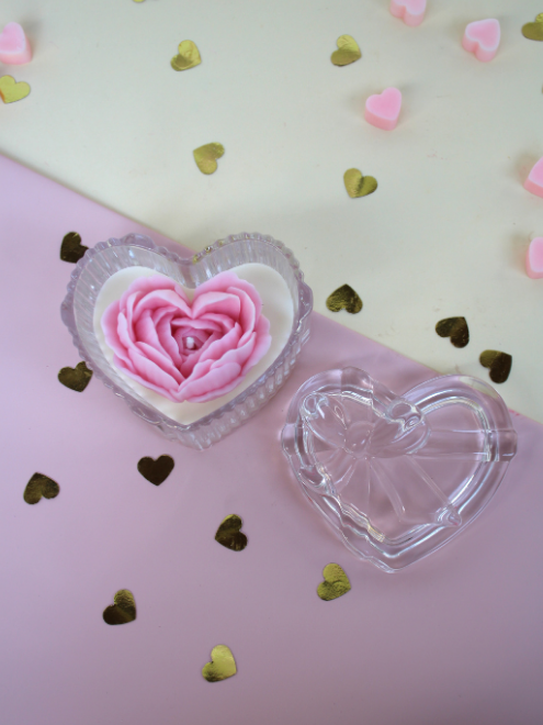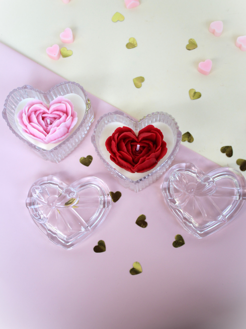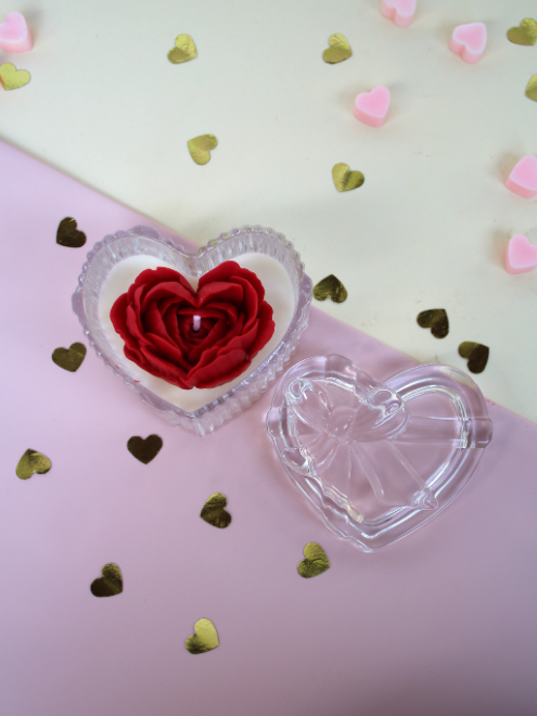 Elevate your space with our luxurious heart-shaped scented candles, featuring beautifully crafted rose designs. Housed in elegant crystal-clear cases, these candles add a touch of sophistication to any room, making them the perfect gift for anniversaries, weddings, Valentine’s Day, and special occasions.