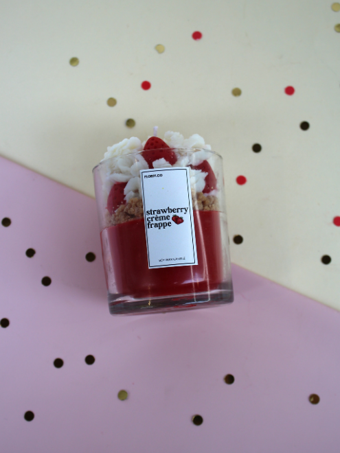 Treat your senses to the sweet, creamy scent of our Strawberry Creme Frappe Candle. With the delicious fragrance of ripe strawberries blended with a smooth, vanilla crème, this candle creates a light, refreshing atmosphere. The perfect balance of fruity sweetness and creamy richness, it fills your space with the comforting aroma of a chilled strawberry frappe. Whether you're unwinding after a busy day or adding a playful touch to your decor, this candle brings a burst of sweetness and warmth to any room.