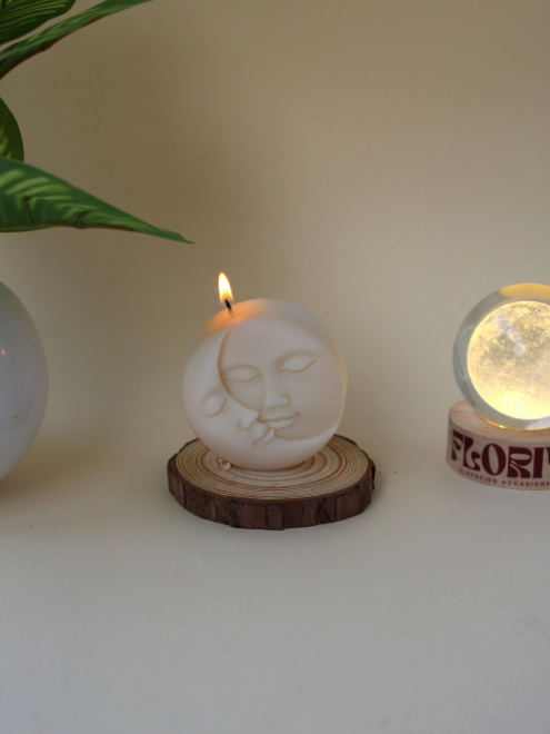 The Sun Moon Candle is a stunning representation of balance and harmony, capturing the essence of both day and night.