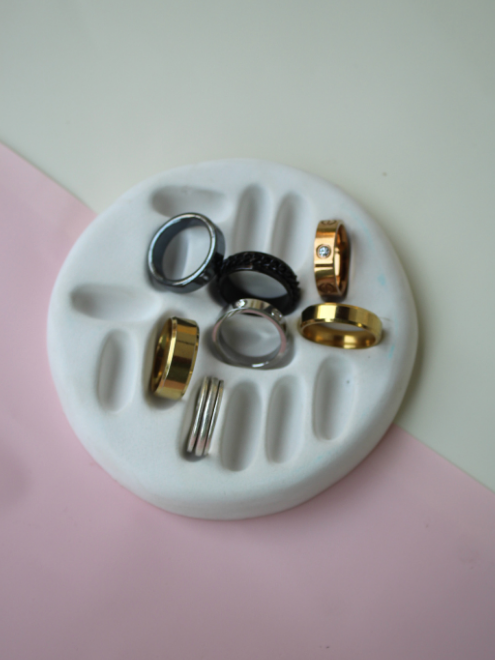 Keep your rings and small accessories neatly stored with this Minimalist Trinket Ring Organizer. Designed for both style and functionality, its sleek, handcrafted design adds a modern touch to your vanity or bedside table. Perfect for everyday use or as a thoughtful gift for jewelry lovers.